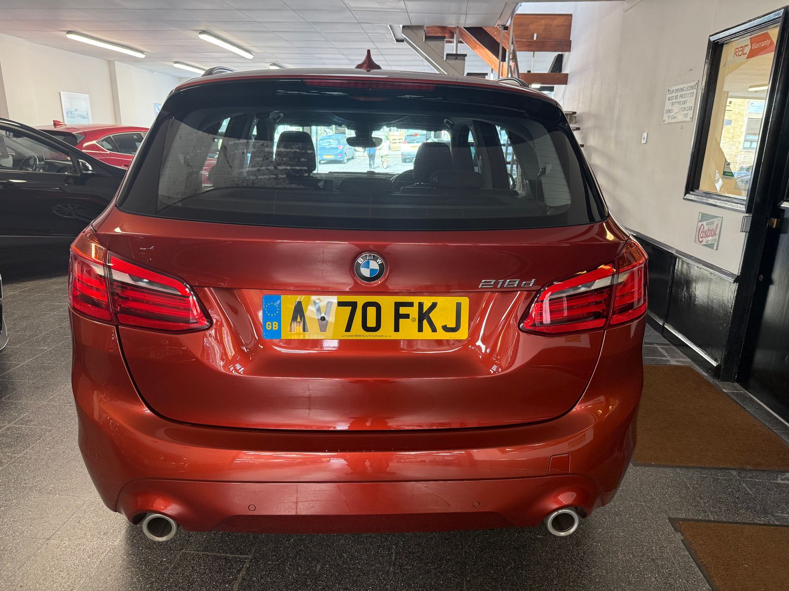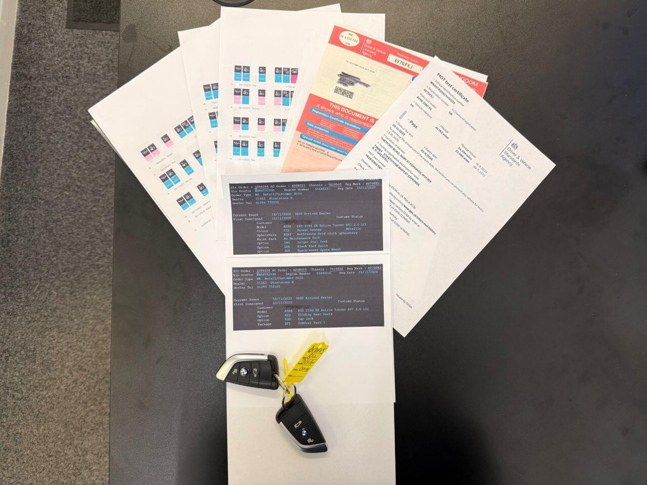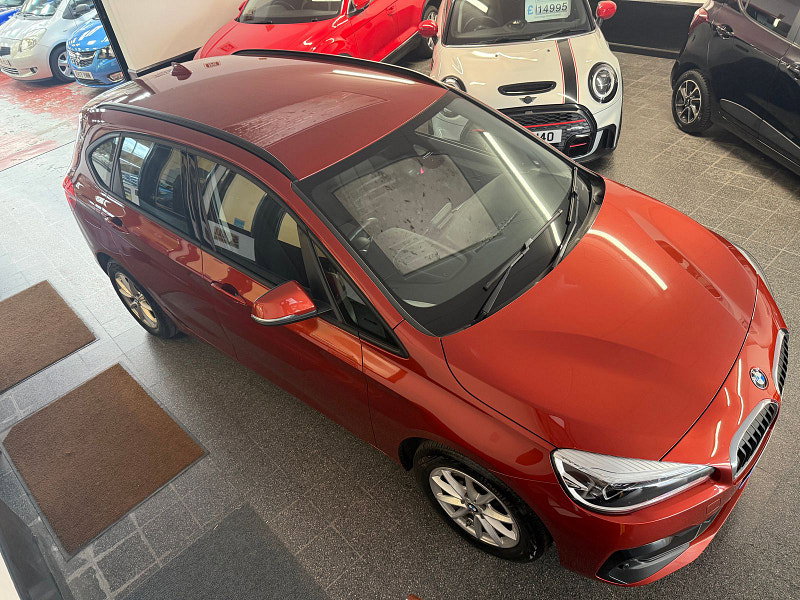 Finance from 9.9% APR. 1 owner from new, Full BMW Service history. EURO 6 BMW 218d SE Active Tourer manual. With its high seat position, this 2 wheel drive 218d SE is finished in Sunset Orange Metallic with Anthracite Heated grid cloth electric front seats with driver memory. It is fitted with Black Roof Rails, Larger Fuel Tank, 15" Alloys with space saver spare wheel and car jack, sliding rear seats, Comfort Pack, BMW Navigation, Bluetooth, remote locking, electric windows and power folding mirrors, Dual zone climate control Air con, Cruise Control, Limited, PDC Front and Rear park sensors, Auto LED lights, Auto wipers, Power Boot lid, DAB Stereo, USB & Aux, CarPlay plus more.