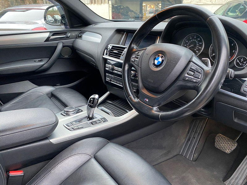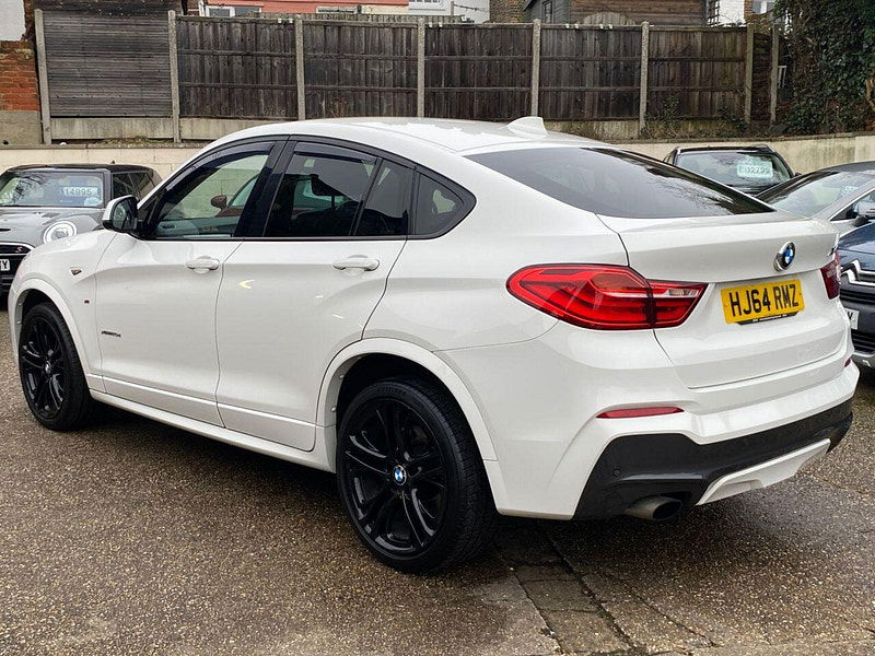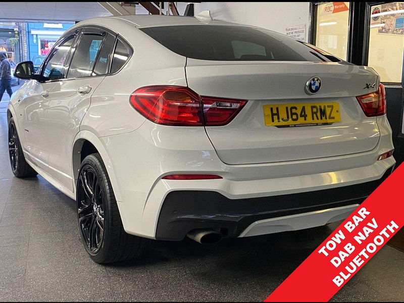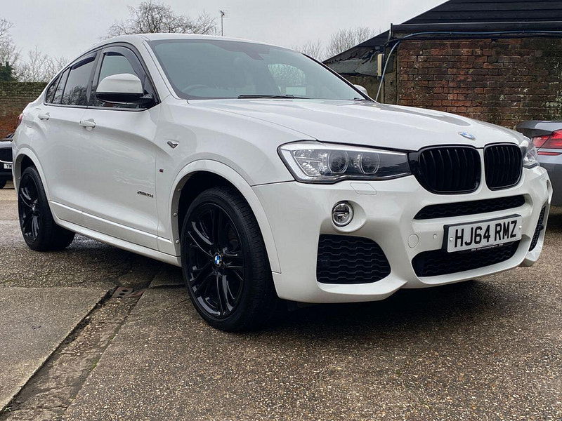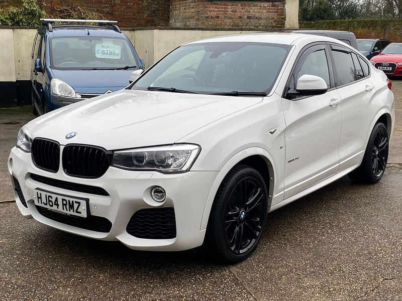 BMW X4 20D M Sport, ULEZ. Harman Kardon Hi-Fi. This X4 is finished in Alpine White with Black Nevada leather. This car comes with Sun protection Glass, 20" M Double Spoke Gloss Black Alloys, M Sport Pro package, Media Package- Professional, Bluetooth, power bootlid, remote central locking, electric windows, electric folding mirrors, cruise control, Steering wheel paddles, electric memory heated front seats, auto xenon lights, headlamp wash, led day lights, auto wipers, front and rear park distance control, DAB, CD, USB, aux, multifunction steering wheel, electric folding towbar and more..2 keys.