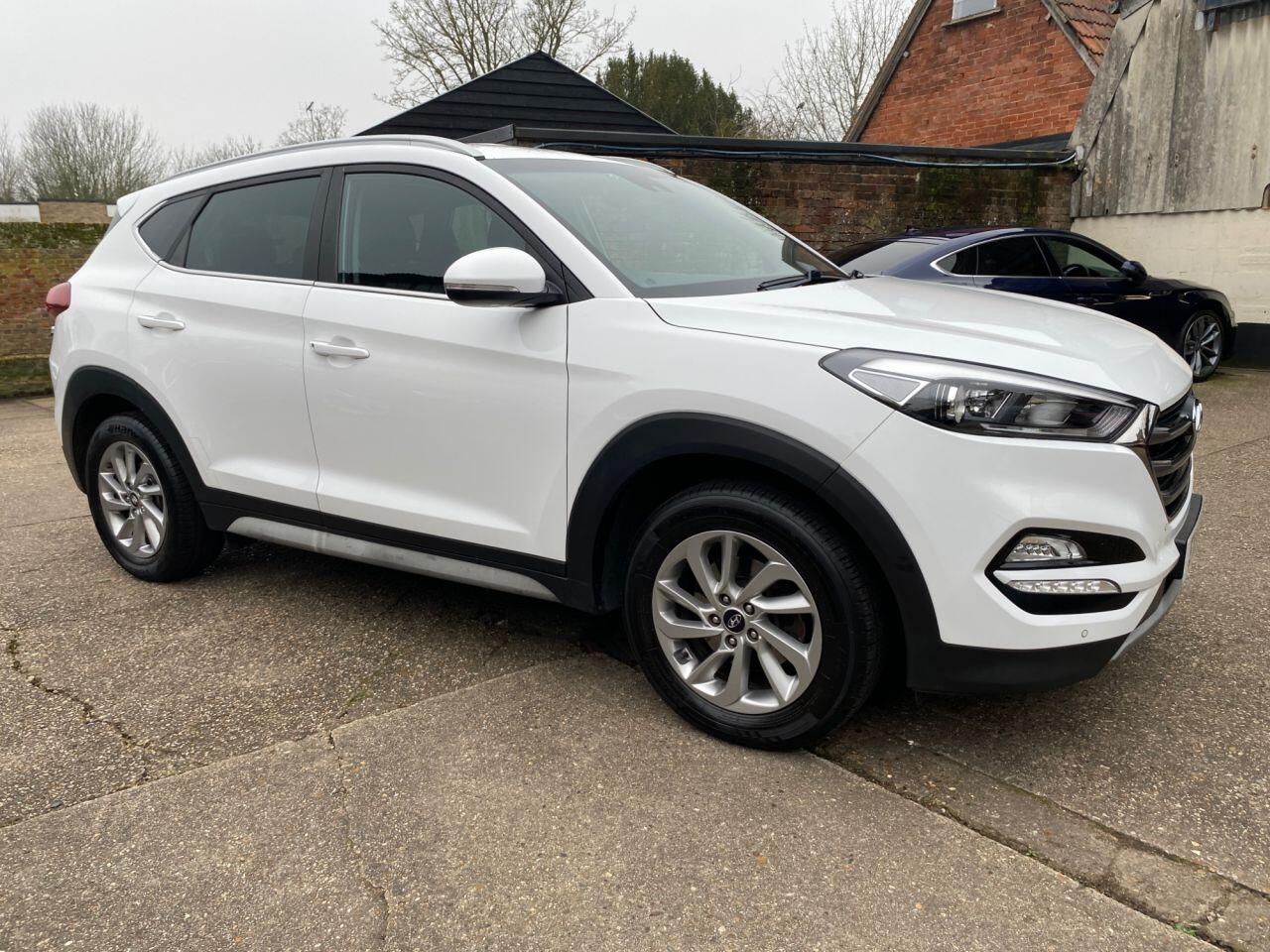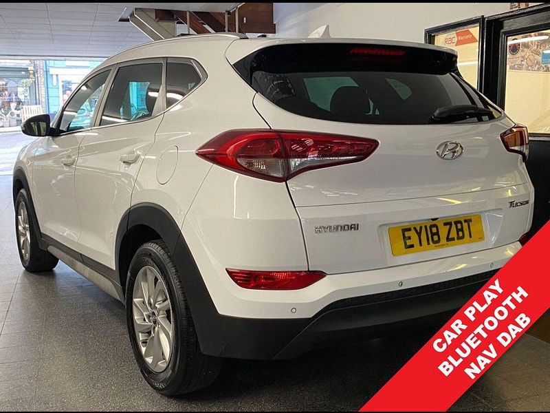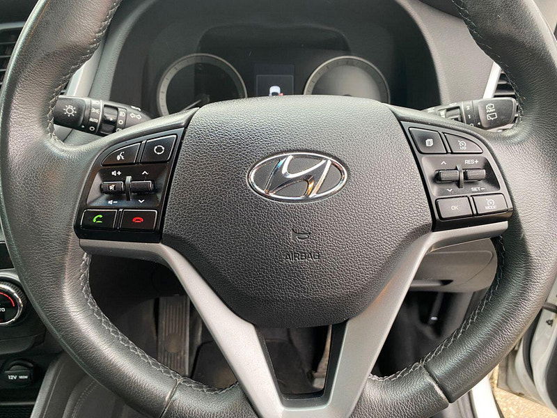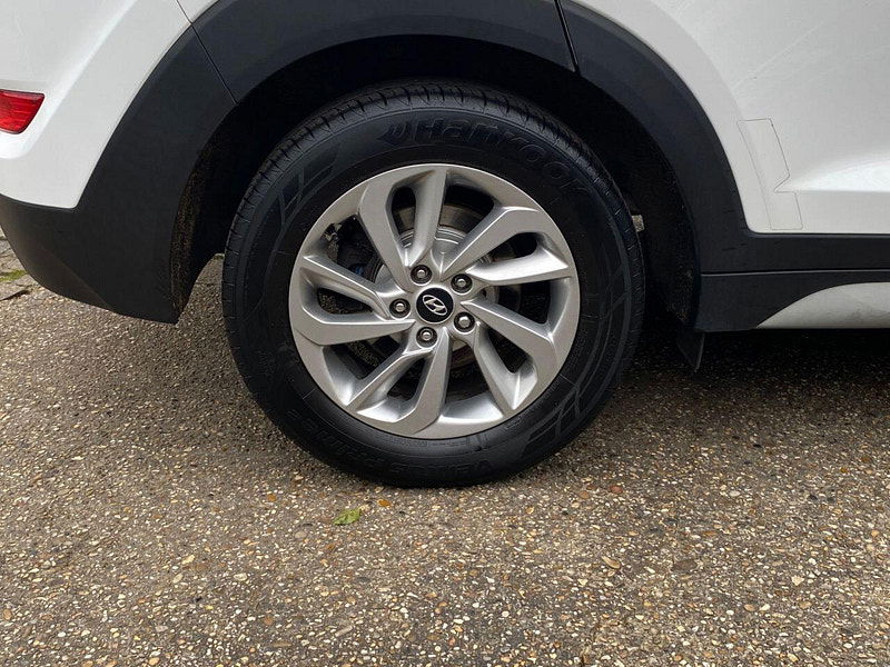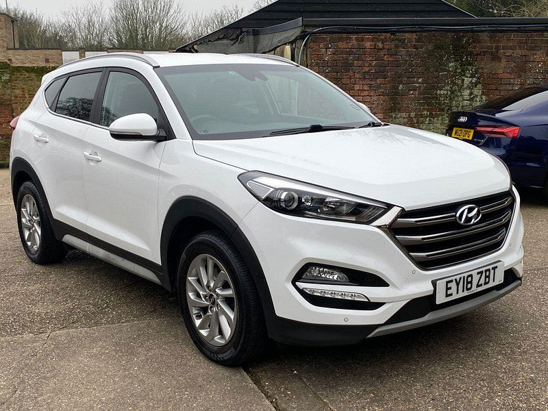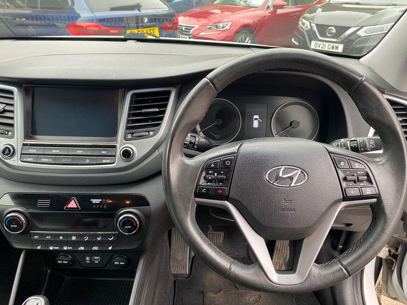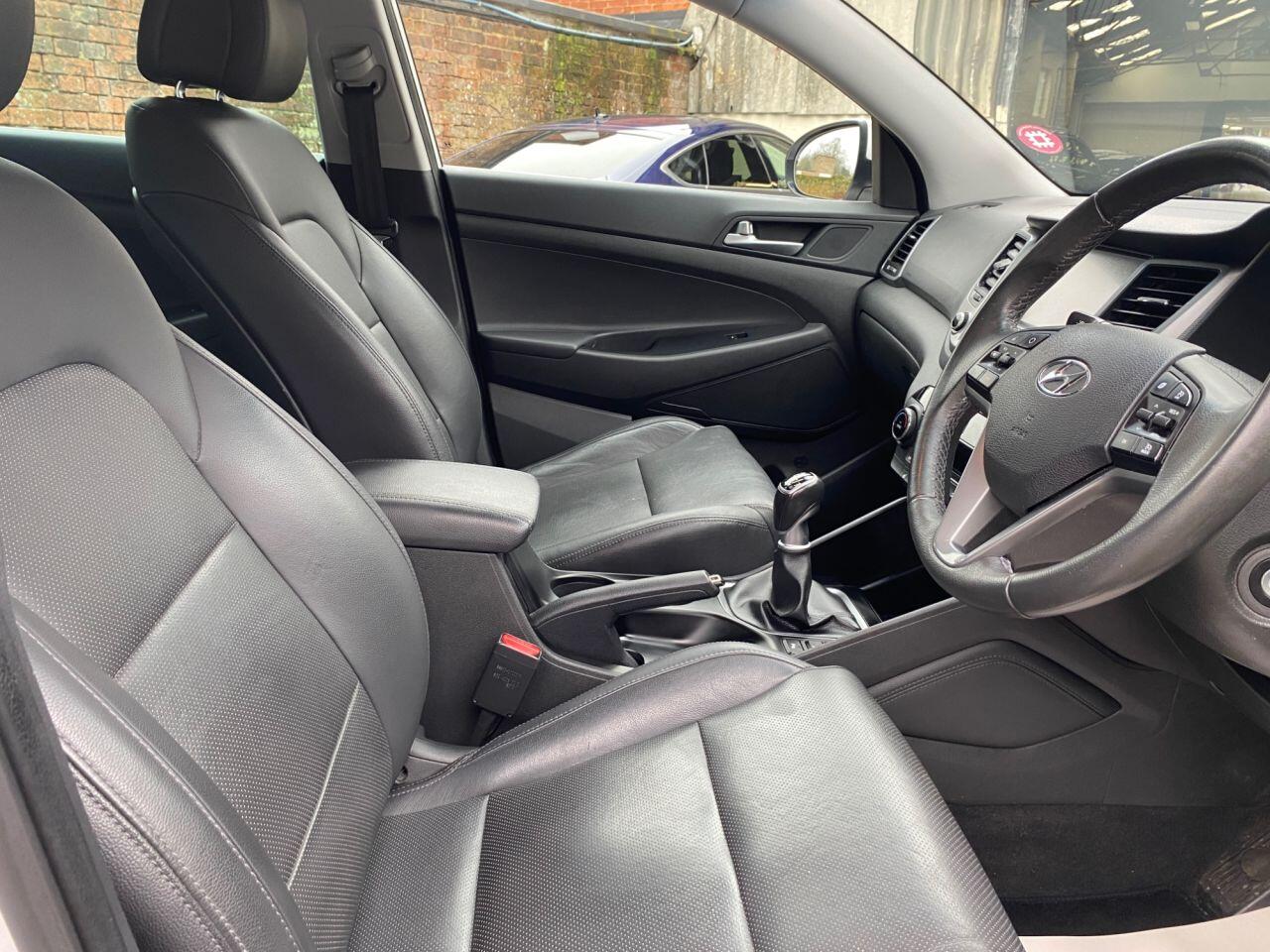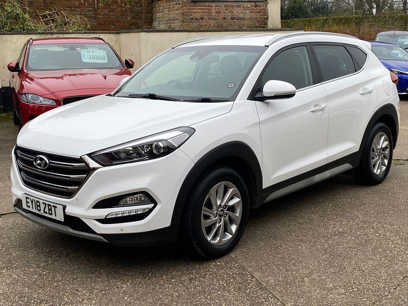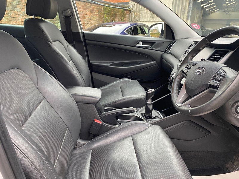 Finance Available from 9.9% APR. Diesel and ULEZ friendly, this Tucson is finished in Polar White with Black heated Leather seats. It is fitted with power steering, Carplay, reverse camera, front and rear park assist, remote locking, electric windows, mirrors with power fold, dual zone climate control, cruise control, lane keeping system, Touch screen Satellite Navigation, Bluetooth, LED Day lights, 3 keys, 17" Alloy wheels, full size spare wheel, DAB Stereo with Aux & USB ports and more. Two owners from new.