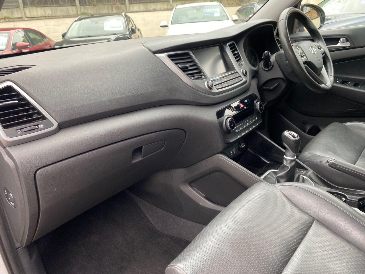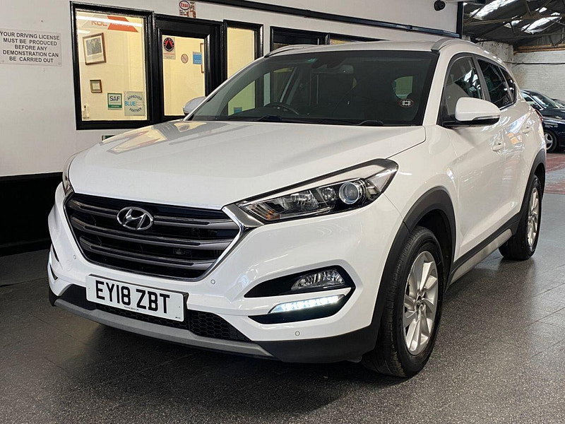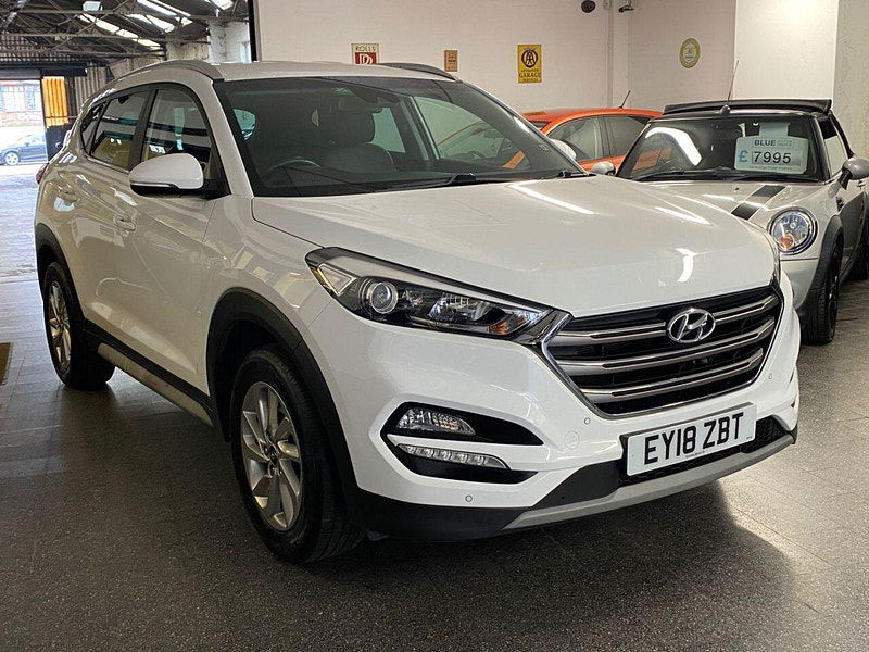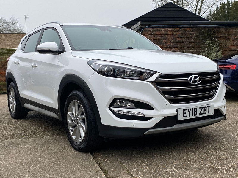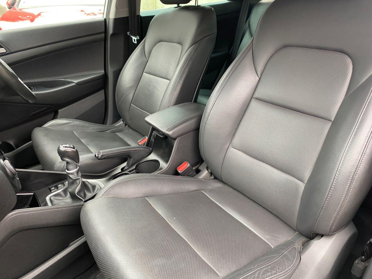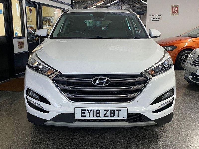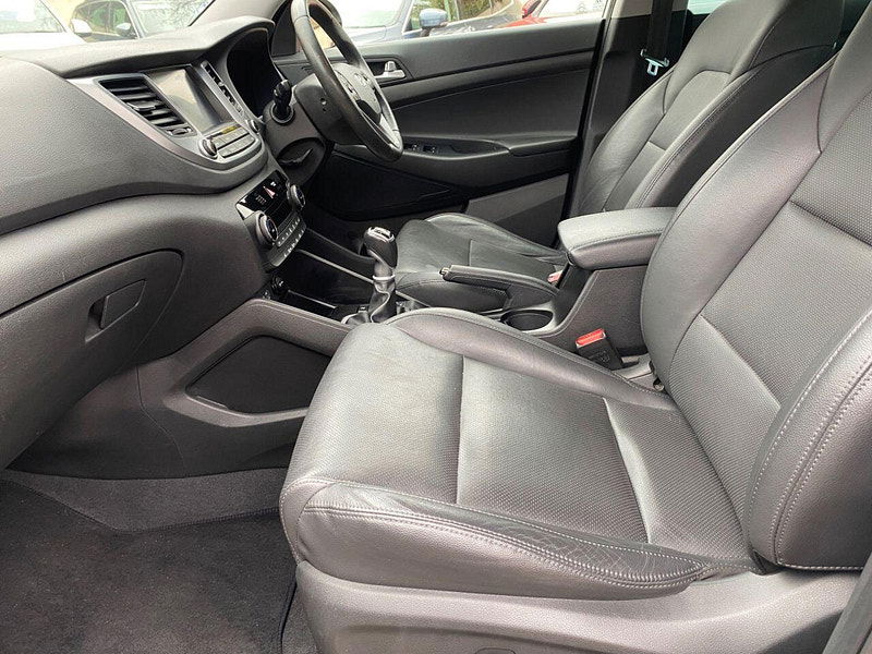 Finance Available from 9.9% APR. Diesel and ULEZ friendly, this Tucson is finished in Polar White with Black heated Leather seats. It is fitted with power steering, Carplay, reverse camera, front and rear park assist, remote locking, electric windows, mirrors with power fold, dual zone climate control, cruise control, lane keeping system, Touch screen Satellite Navigation, Bluetooth, LED Day lights, 3 keys, 17" Alloy wheels, full size spare wheel, DAB Stereo with Aux & USB ports and more. Two owners from new.