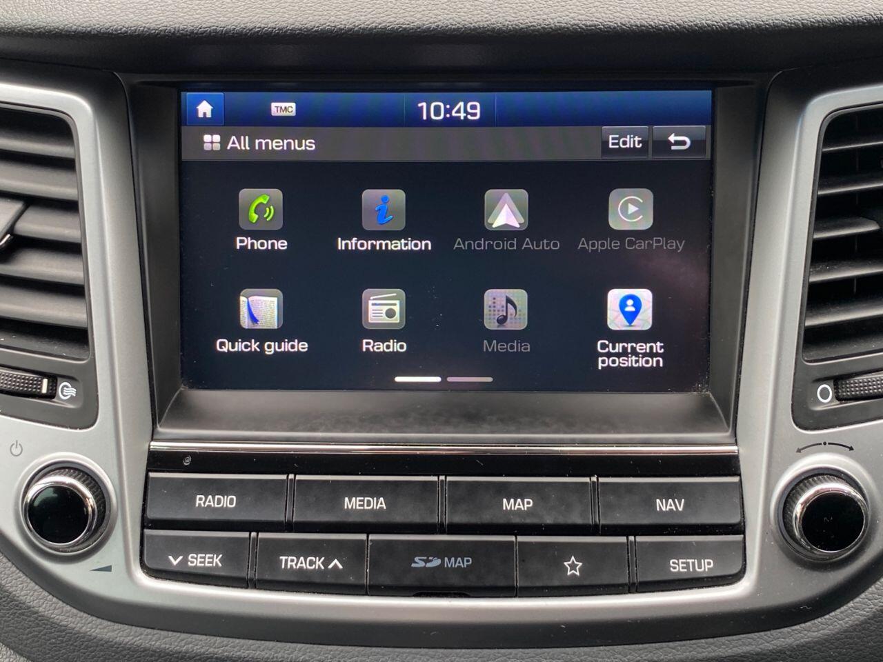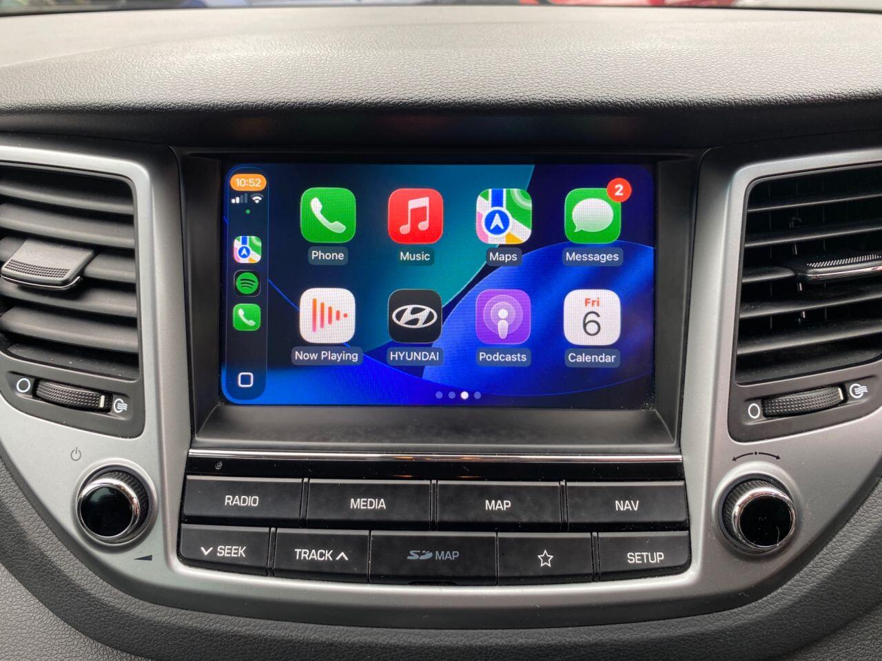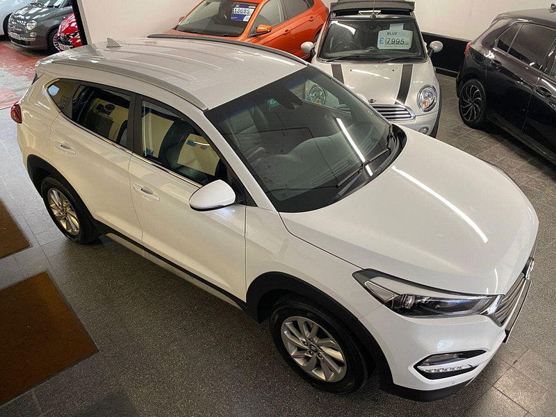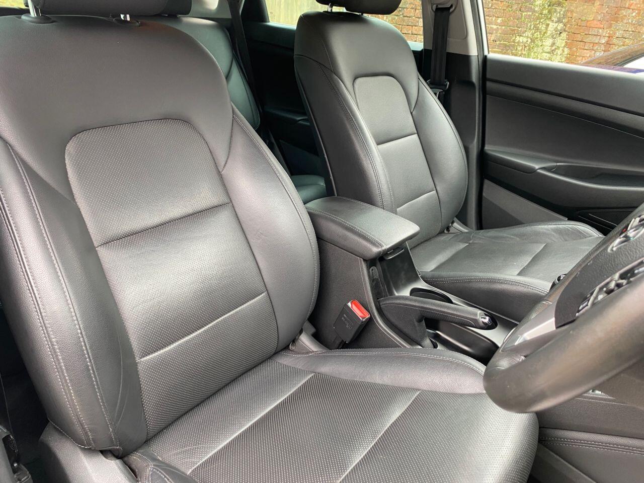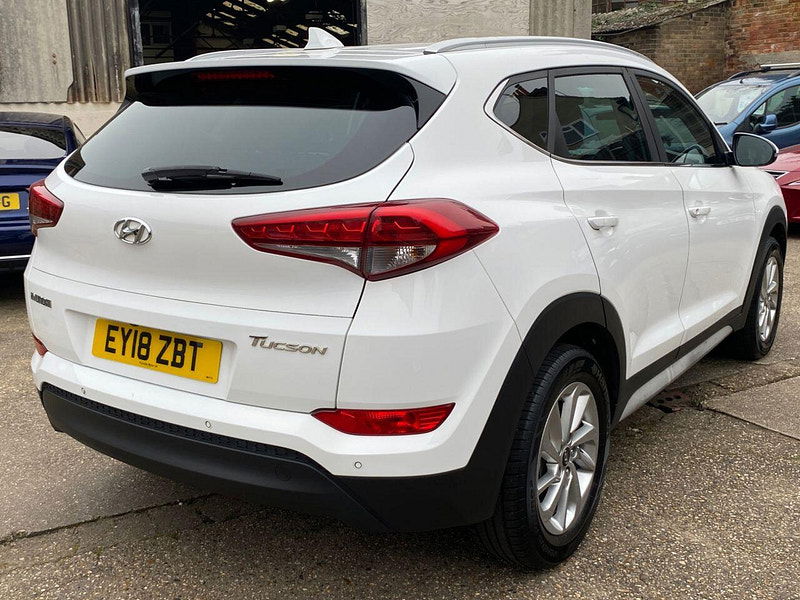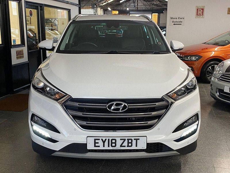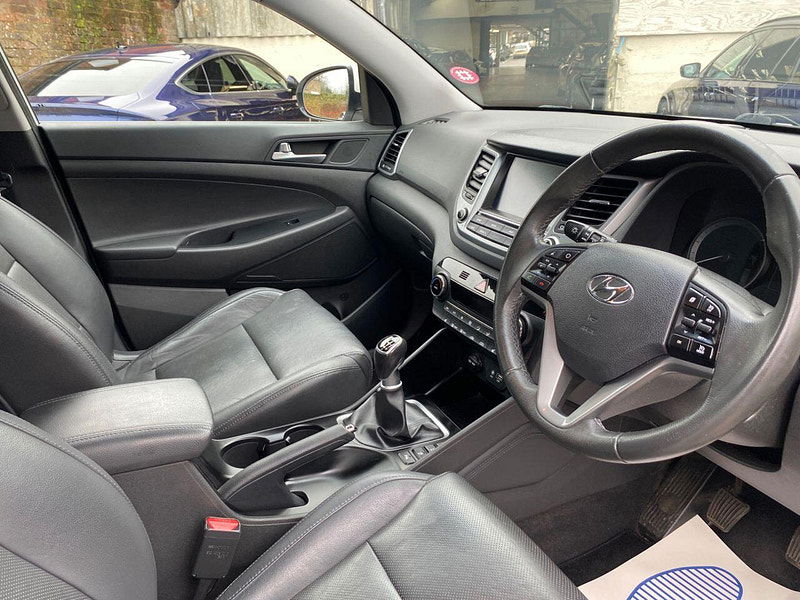 Finance Available from 9.9% APR. Diesel and ULEZ friendly, this Tucson is finished in Polar White with Black heated Leather seats. It is fitted with power steering, Carplay, reverse camera, front and rear park assist, remote locking, electric windows, mirrors with power fold, dual zone climate control, cruise control, lane keeping system, Touch screen Satellite Navigation, Bluetooth, LED Day lights, 3 keys, 17" Alloy wheels, full size spare wheel, DAB Stereo with Aux & USB ports and more. Two owners from new.