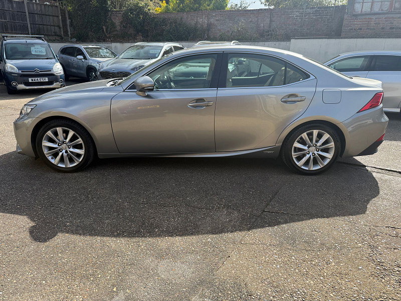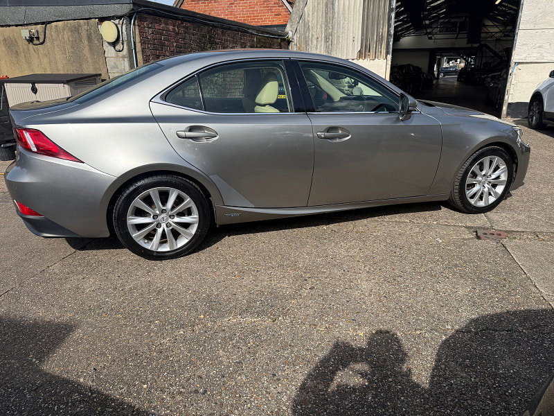 2 Private Owners. Heated leather Seats. ULEZ Compliant. This Elegant Lexus IS 300H Executive Edition Automatic with Paddle shift is finished in Metallic Sonic Titanium with Ivory heated seats. Its is fitted with front and rear Park Distance control, Lexus Media Navigation, DAB with USB, aux port, Bluetooth, Xenon Lights, 17" Alloys, power fold mirrors, Cruise control, 2 keys and more. The current MOT is February 2027.