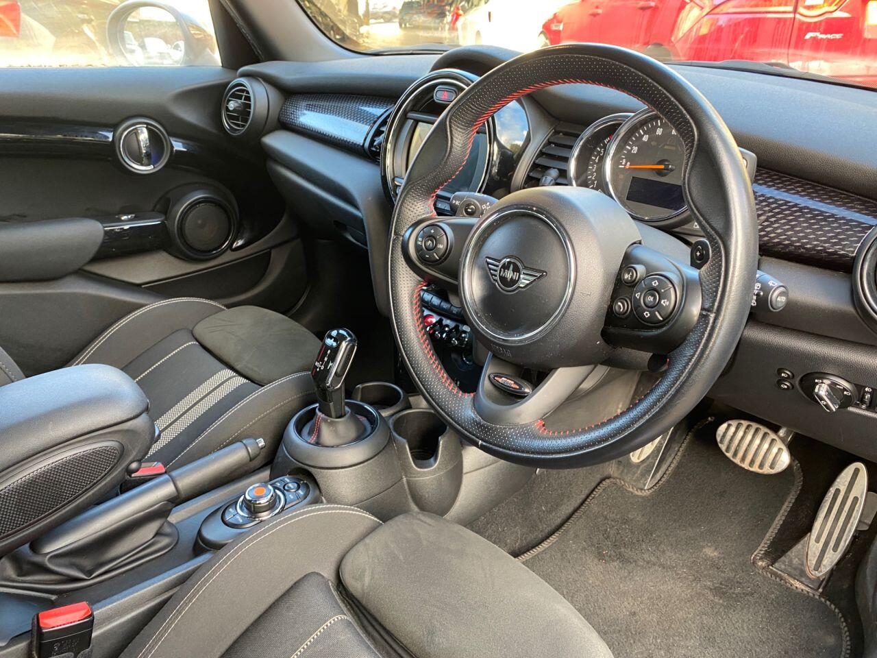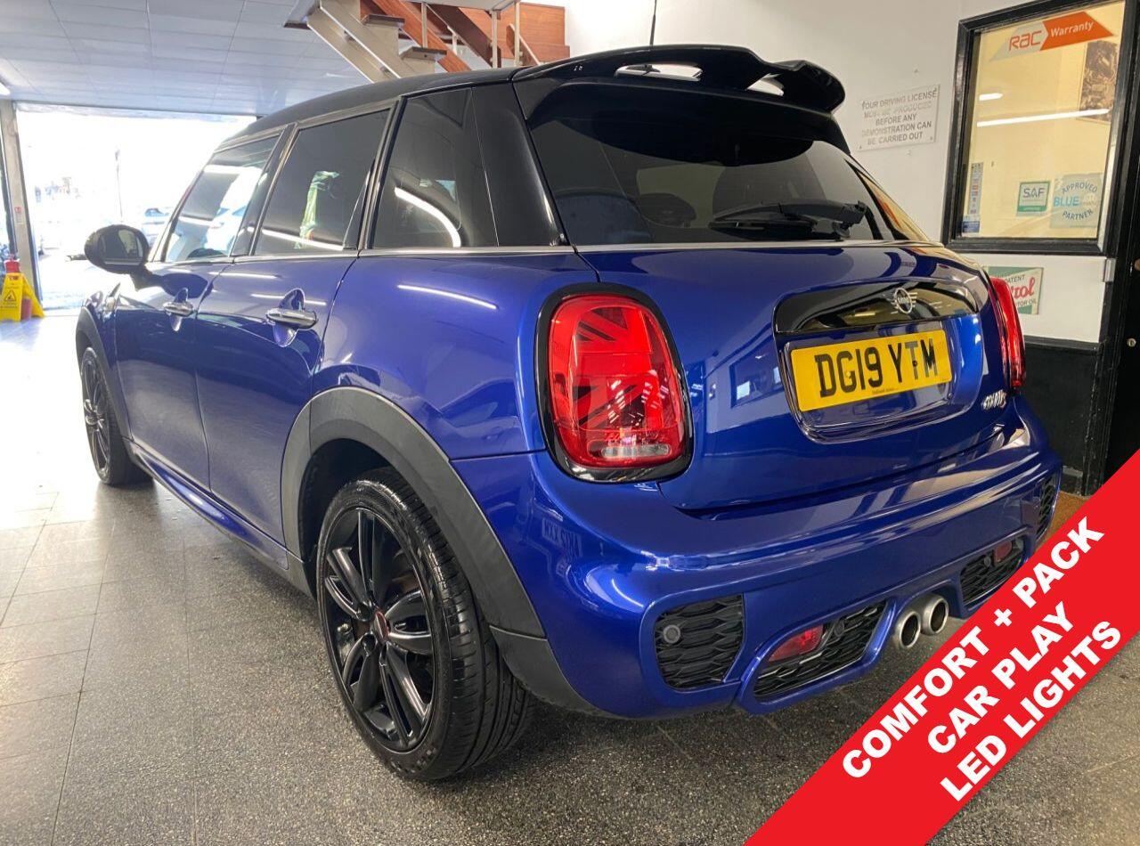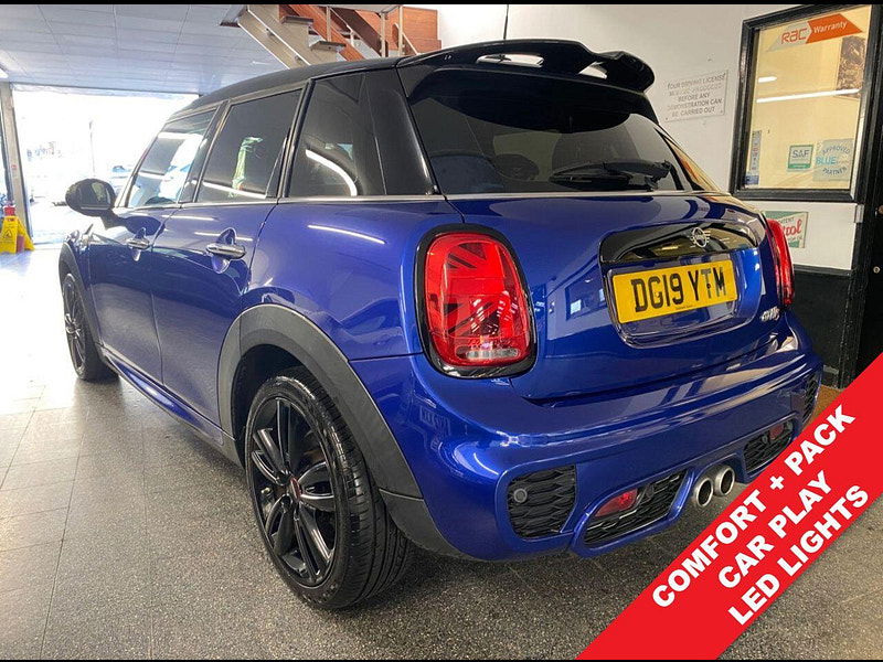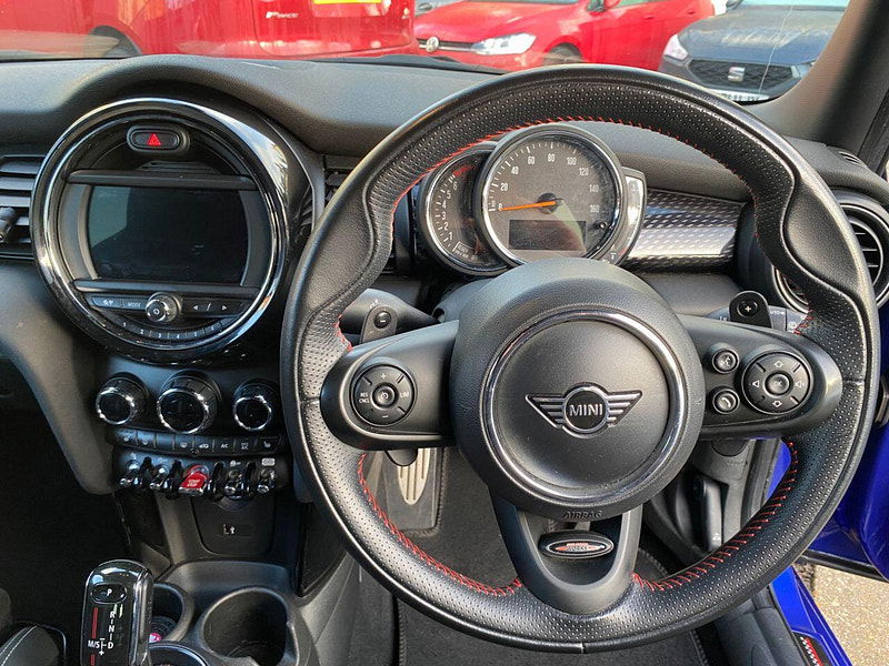 Finance From 9.9% APR - Fitted with lots of factory options including LED Headlights and LED fog lights. ULEZ Petrol. 3 private owners and Full Documented Service History, 2 keys, Steptronic Automatic with paddles. It is finished in Starlight Blue Metallic with Dinamica/cloth Carbon Black heated John Cooper Works sports seats. Black roof, mirror caps and bonnet stripes, Heated seats, along with 17" Track Spoke Black alloy wheels. It is fitted with Electric folding mirrors, Piano Black exterior, LED headlights and fog lights, Cruise control, Concierge Service, Comfort Plus Pack, Navigation Pack, Bluetooth, reverse camera, front and rear park sensors, darkened rear glass, Cruise control with speed limit control, electric windows and mirrors, mood lighting, LED headlights, Union Jack lights & rain sensor, USB - Aux - DAB, CarPlay and more.